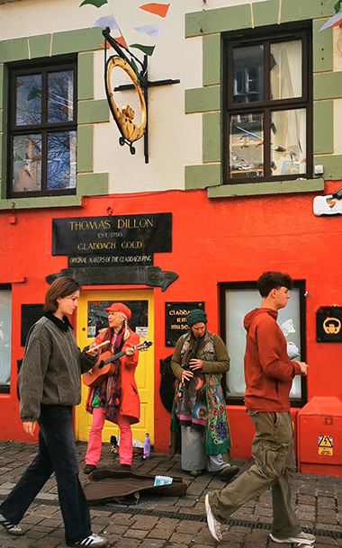 I gaze at the green, white, and orange bunting above Shop Street, as crowded as ever, yet cozy at the same time. I’m glad to be part of this spontaneous, artistic community. Whenever I forget about my friend, this city, again. The buskers will remind me.